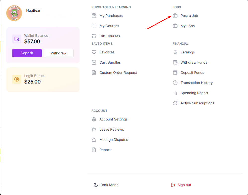 However, before posting a job on the jobs board, you will need to completely set up your Legiit account with a profile photo, description (bio), address and withdrawal account (in the event you'd need a refund you can withdraw the refund to your bank through PayPal or Payoneer) ... if you have not done this yet, please proceed here first: https://legiit.com/accountsetting